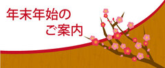 なお、12月30日は17:00までの短縮営業とさせていただきます。 休業期間中は何かとご迷惑をおかけいたしますが、何卒ご了承のほど、お願い申し上げます。